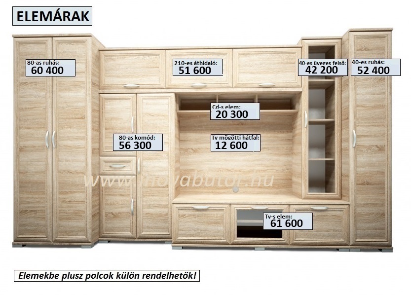 Andorra keretléces szekrénysor – 370, 410 cm elemárak