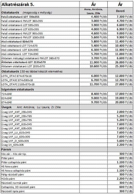Anna konyha – 164, 184, 204, 262 cm elemárak