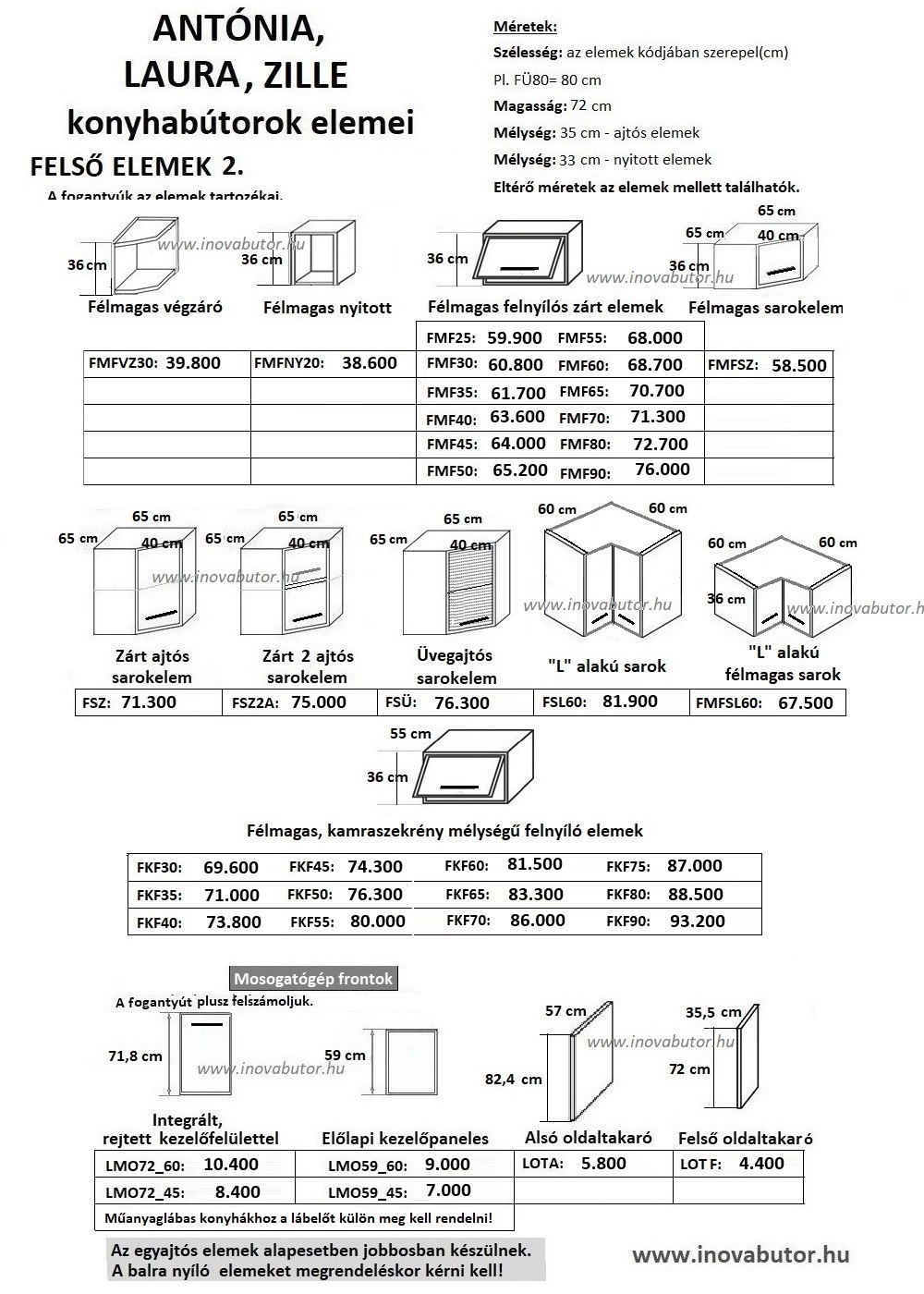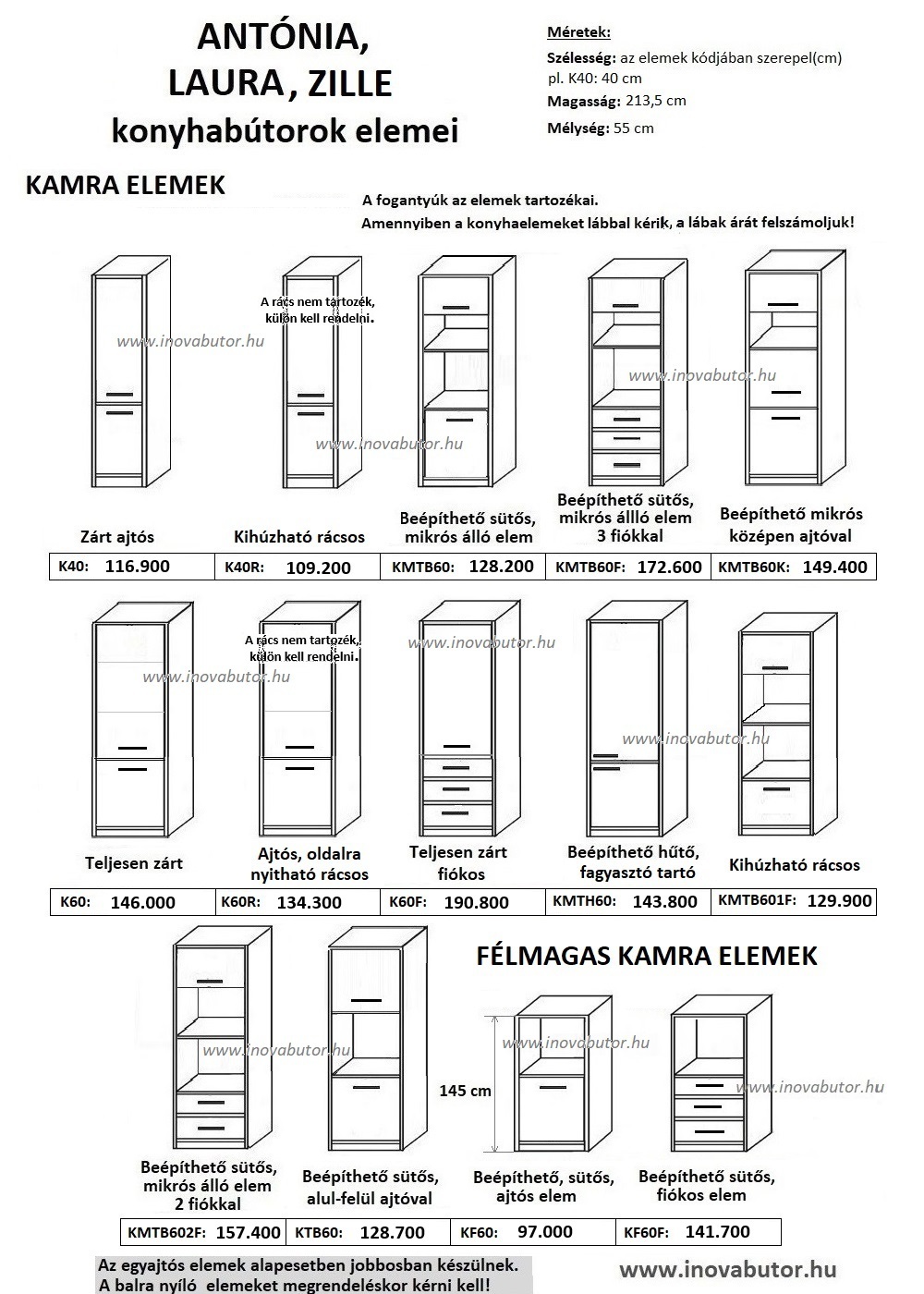 Antónia elemes konyhabútor – 229 cm elemárak