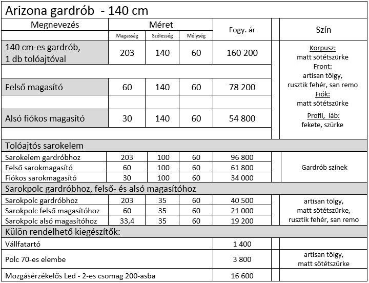 Arizona gardrób elemárak