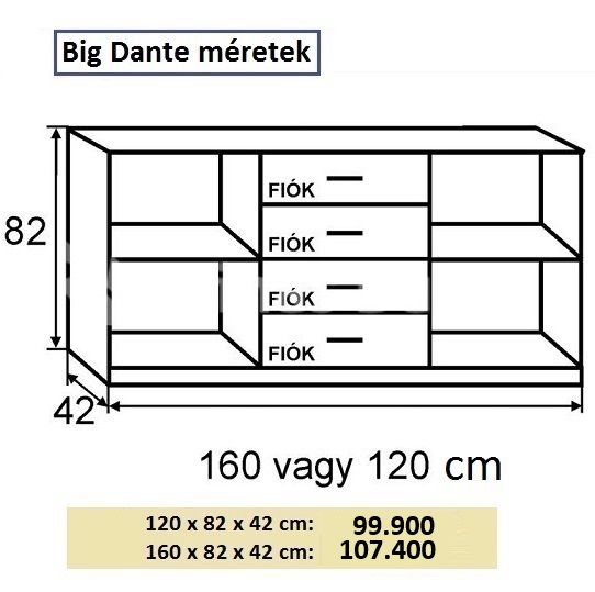 Big Dante tolóajtós, 4 fiókos komód további képek