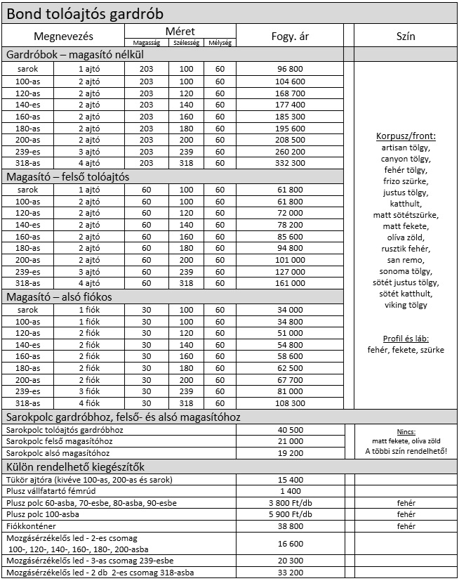 Bond tolóajtós gardrób elemárak