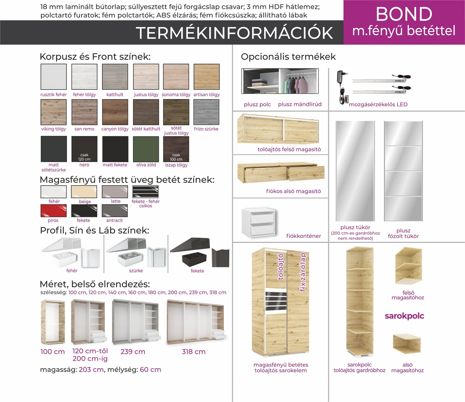 Bond tolóajtós gardrób magasfényű betéttel további képek