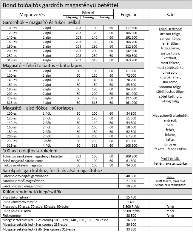 Bond tolóajtós gardrób magasfényű betéttel elemárak