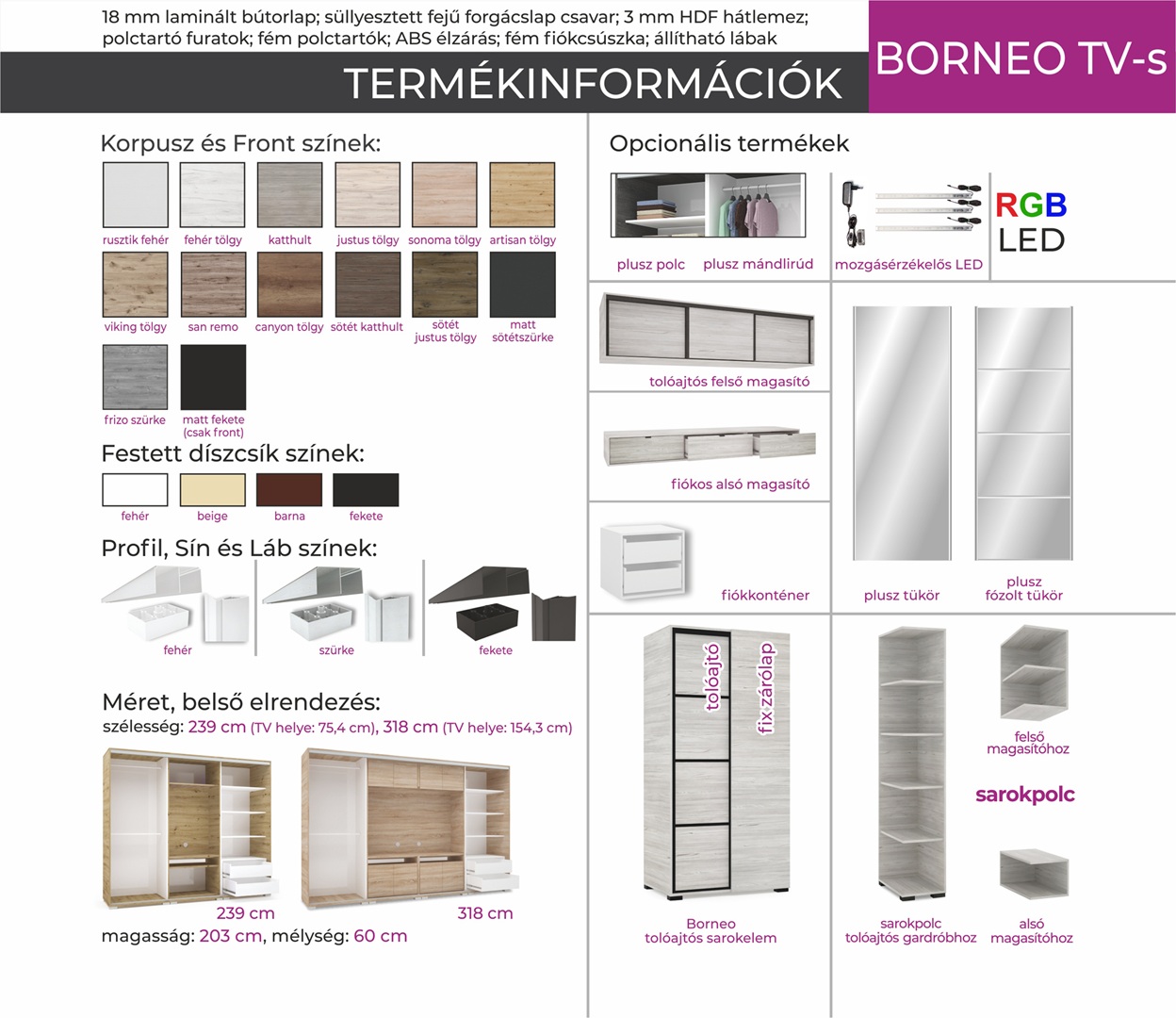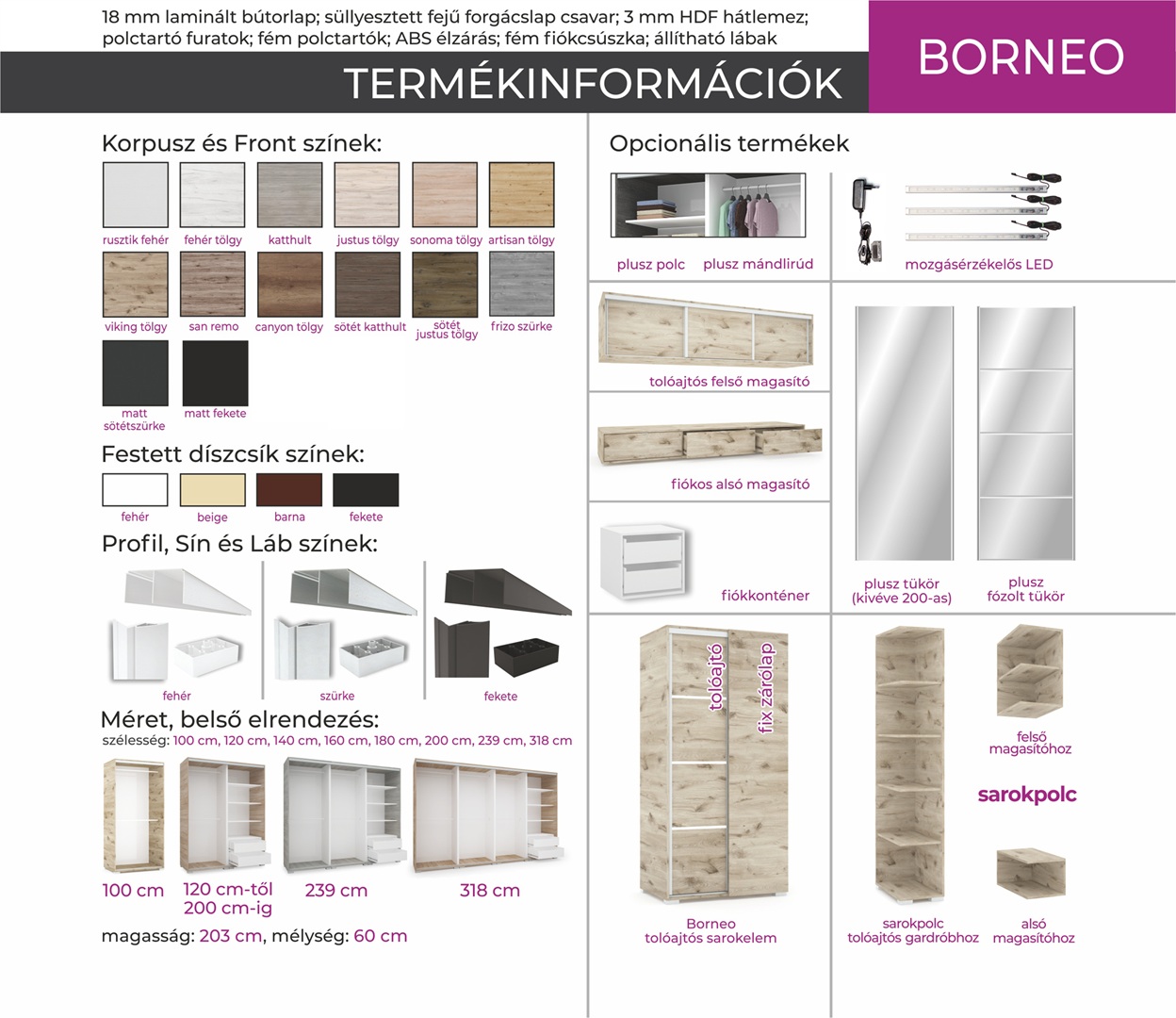Borneo tolóajtós gardrób további képek