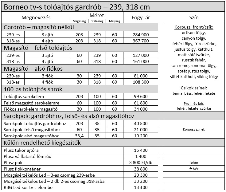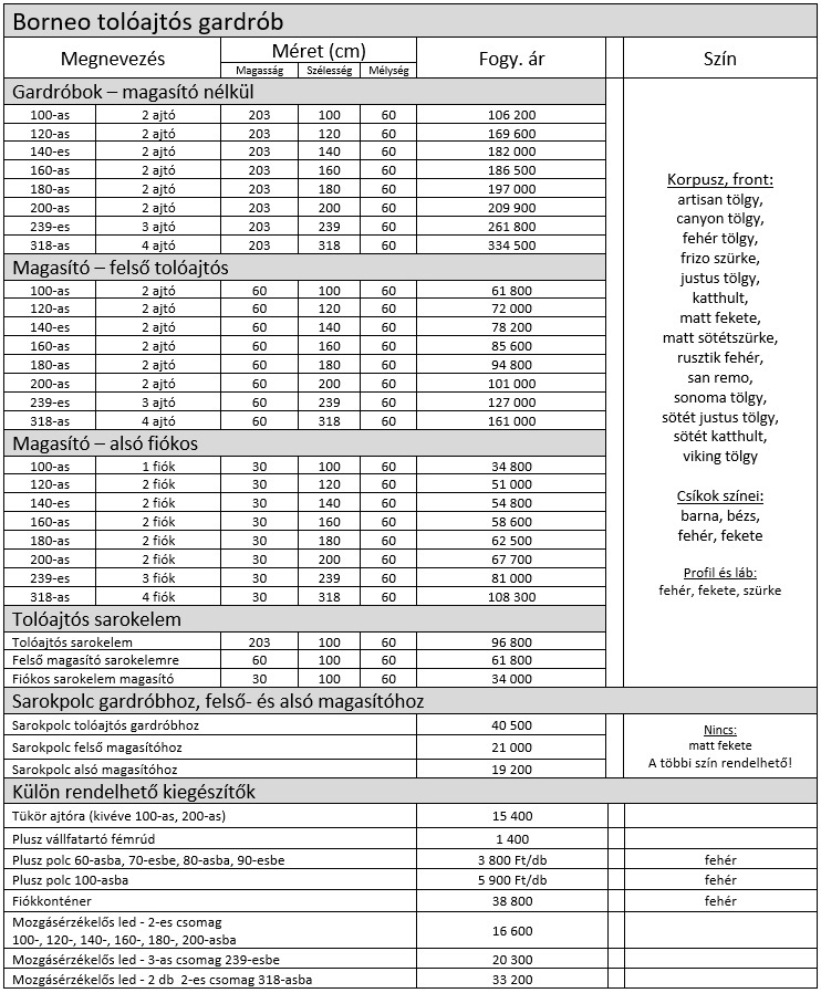 Borneo tolóajtós gardrób elemárak