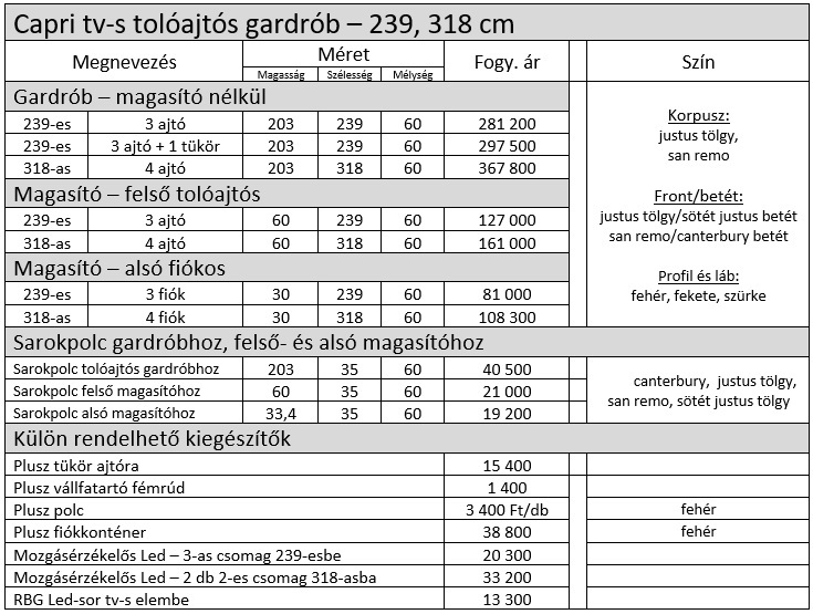 Capri tv-s tolóajtós gardrób elemárak