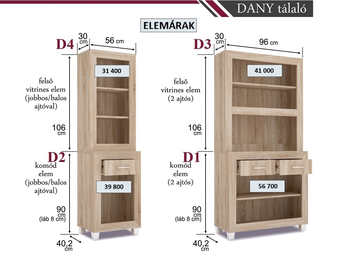 Dany elemes tálaló elemárak