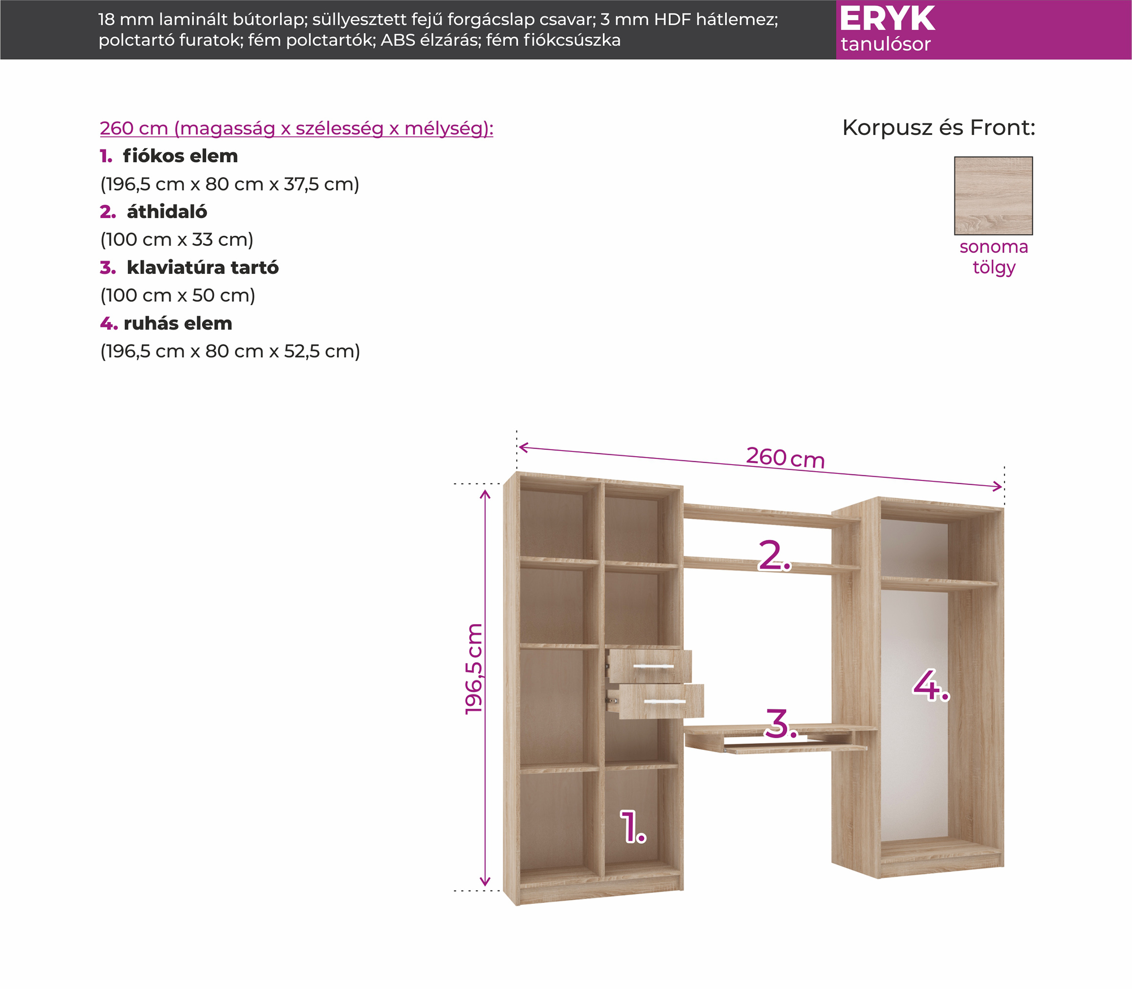 Eryk tanulósor – 260 cm további képek