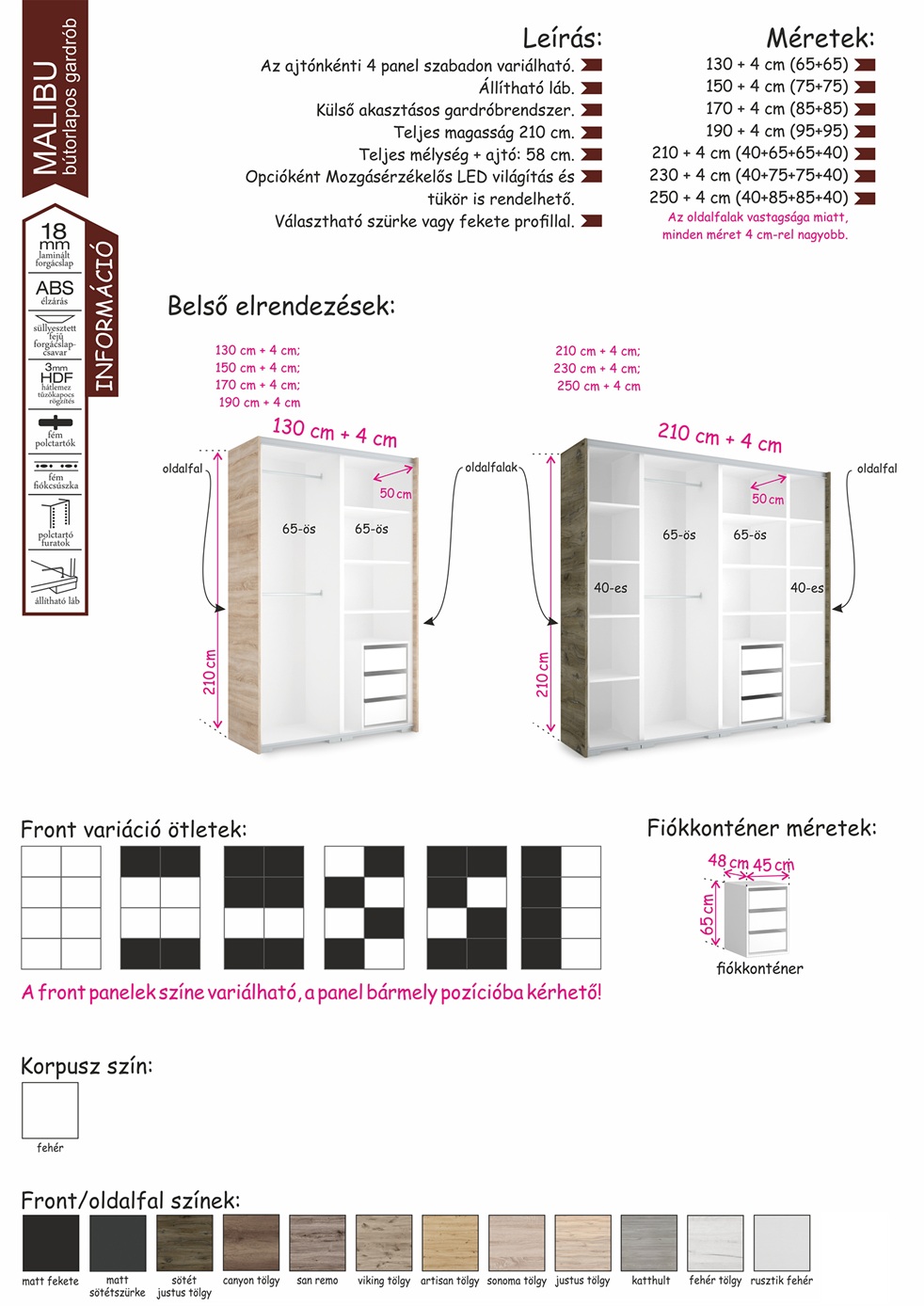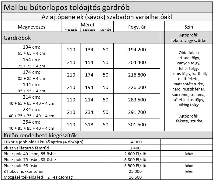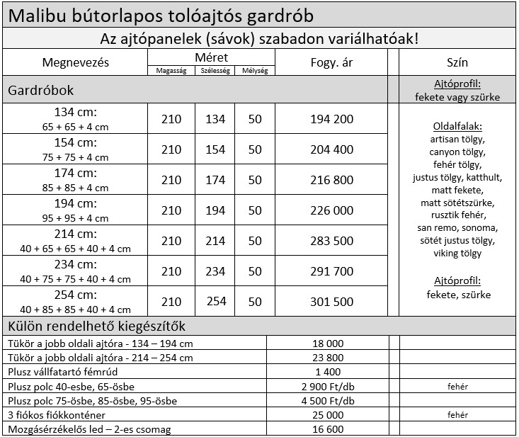 Malibu bútorlapos tolóajtós gardrób elemárak