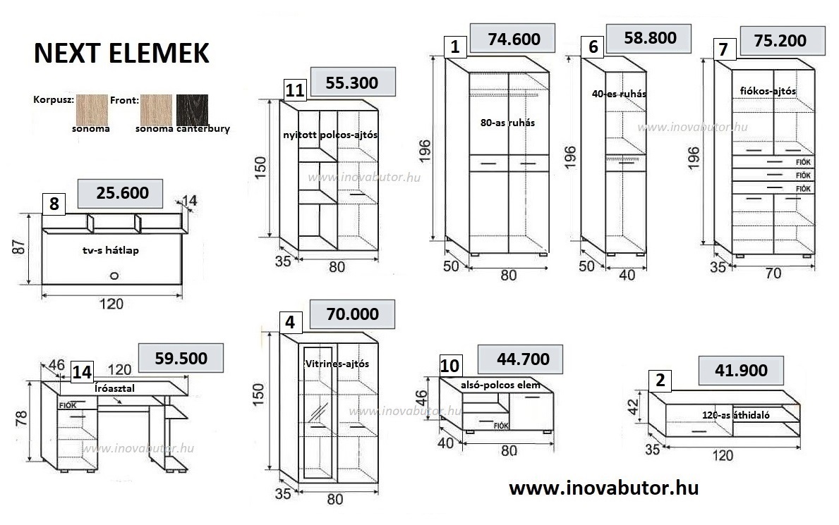 Next gardrób – 160 cm elemárak