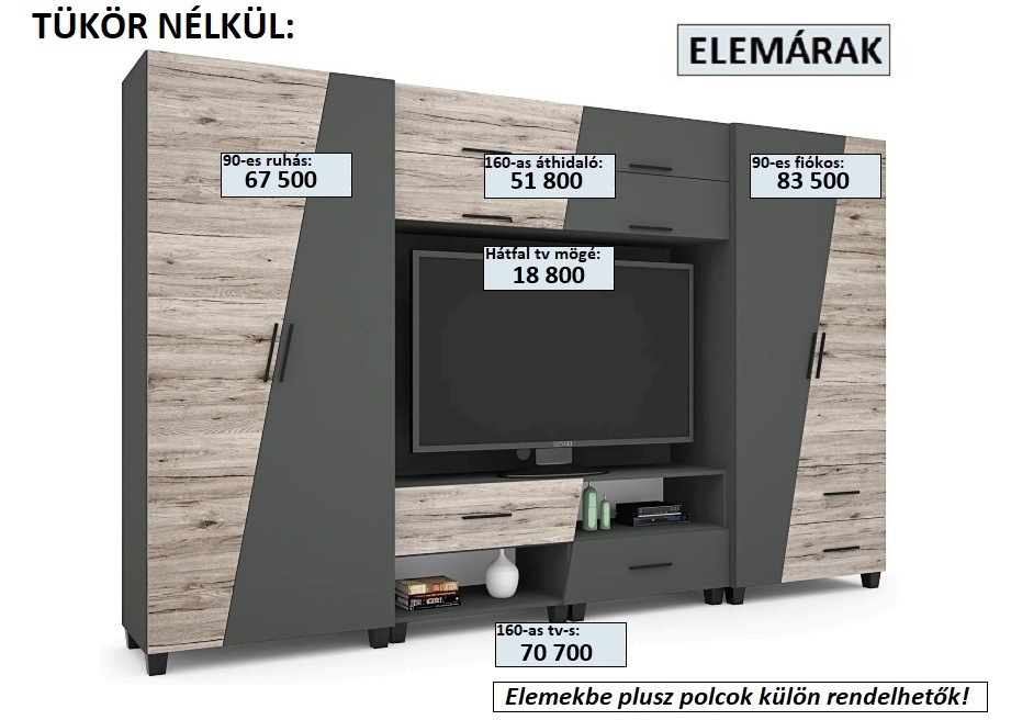 Onix szekrénysor – 340 cm elemárak