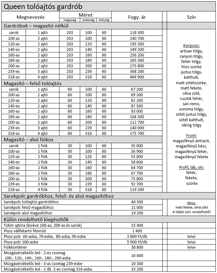 Queen tolóajtós gardrób elemárak