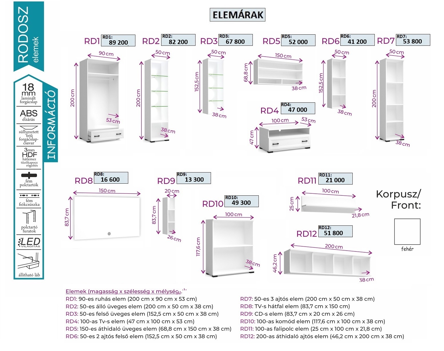 Rodosz szekrénysor – 340, 390 cm elemárak