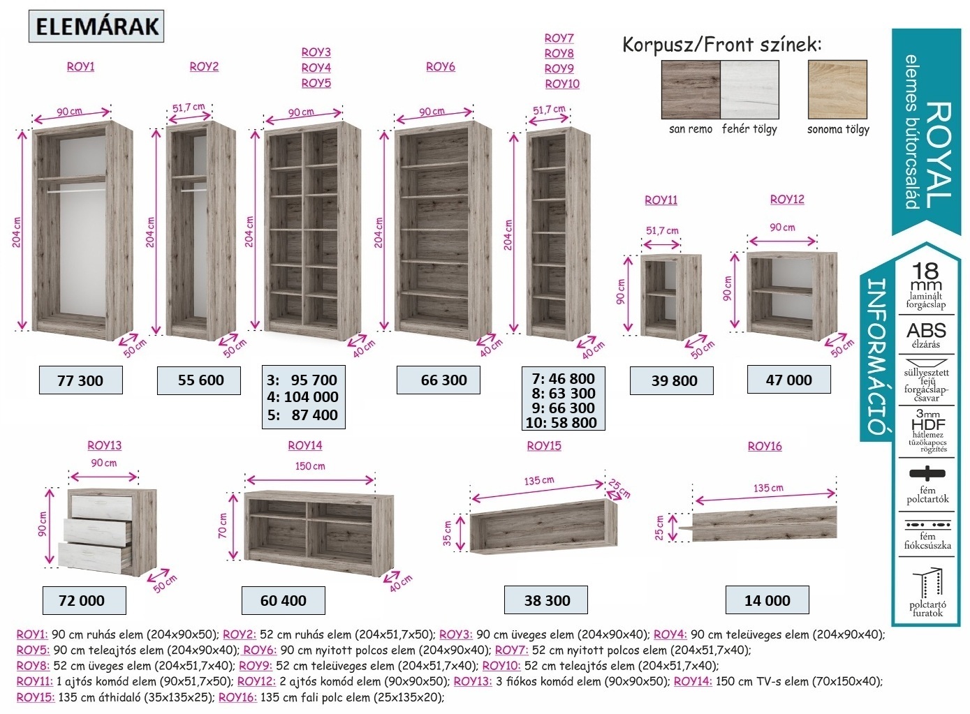 Royal elemes, keretléces szekrénysor további képek