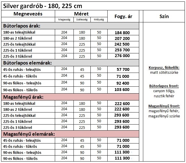 Silver gardrób elemárak